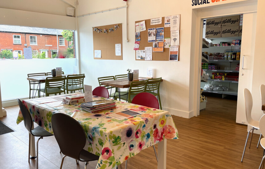 We opened our Social Supermarket there last July and in the other half of the building our Community Café and Kitchen was up and running from November. The café side is a place for members of the Supermarket to pop in any time for a chat, to meet others and grab a tasty bite to eat or drink.